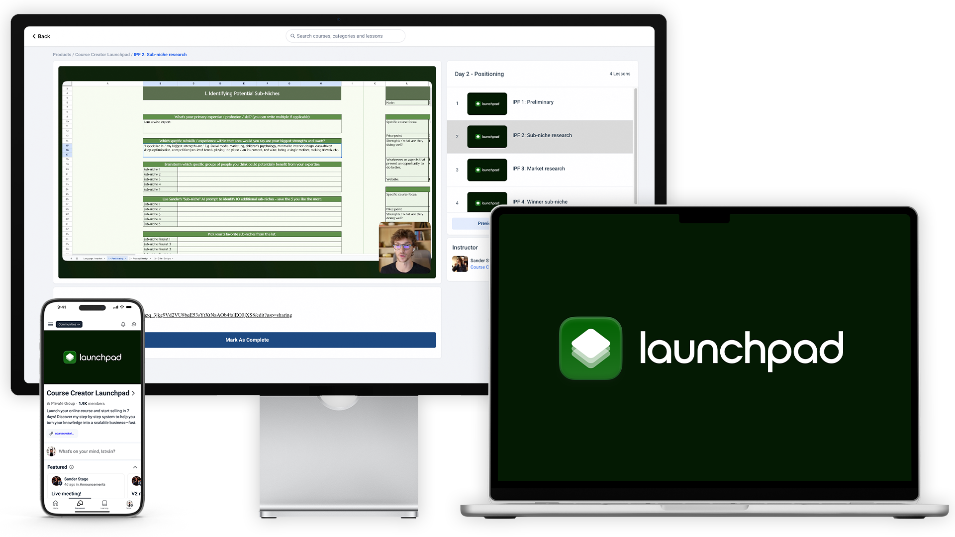 Launchpad is a complete launch system, not just a video course.It gives you the exact steps, structure, and templates to go from idea → validated offer → launch, without guessing or overbuilding and then launching successfully.